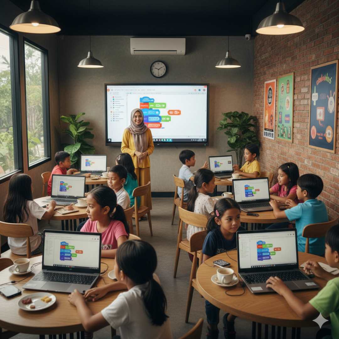 Tantangan terbesar orang tua & guru: bagaimana mengenalkan koding tanpa ribet, tanpa gadget berlebihan, tapi tetap menarik, aman, dan mendidik bagi anak.