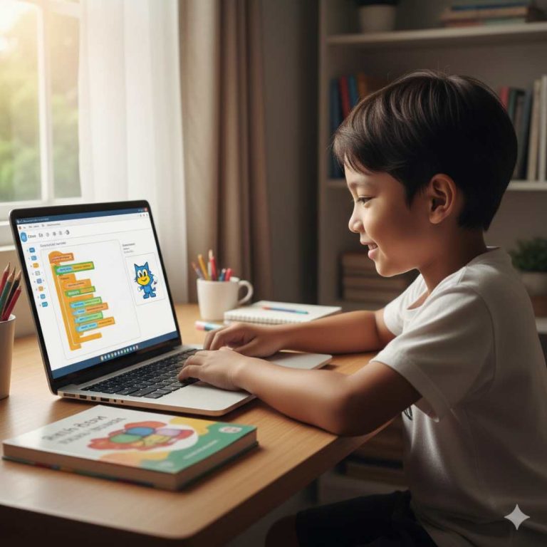 Scratch 3.0 adalah bahasa pemrograman visual yang dirancang untuk anak usia 8–16 tahun. Dengan menyusun blok warna-warni, anak bisa membuat game, animasi, dan cerita interaktif tanpa menulis kode rumit. 👉 Belajar coding bukan hanya soal teknologi, tapi juga melatih logika, kreativitas, dan kerjasama.